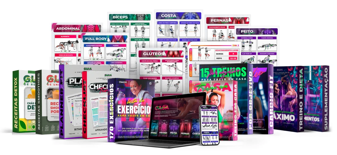 maximizar seus resultados, seja ele o emagrecimento ou o ganho muscular. Um Guia de Treinos com diversas opções de Treinos e Exercício Ilustrados e organizados por circuito, membros ou objetivo. Treinos para fazer em Casa ou na Academia, sem confusão, sem complicação.